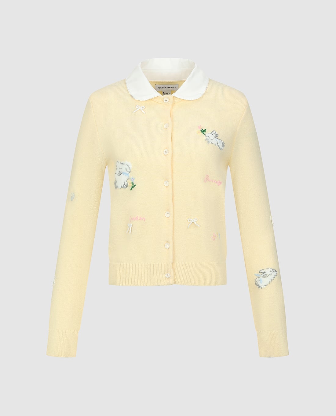 - Thiết kế cardigan với cổ Peter Pan ngọt ngào, cổ điển