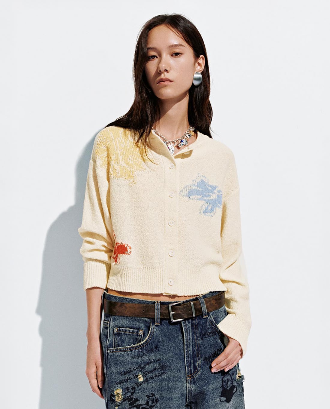 Áo khoác cardigan nữ cổ tròn phối họa tiết