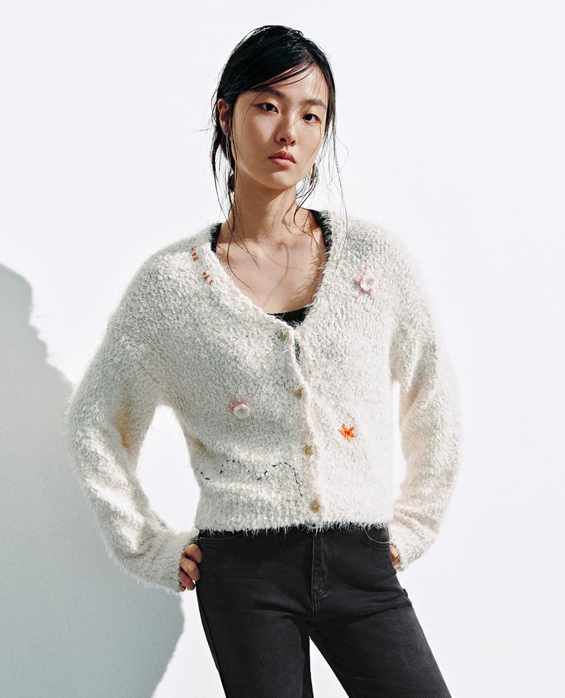 Áo khoác cardigan nữ cổ V tay dài thêu hoa