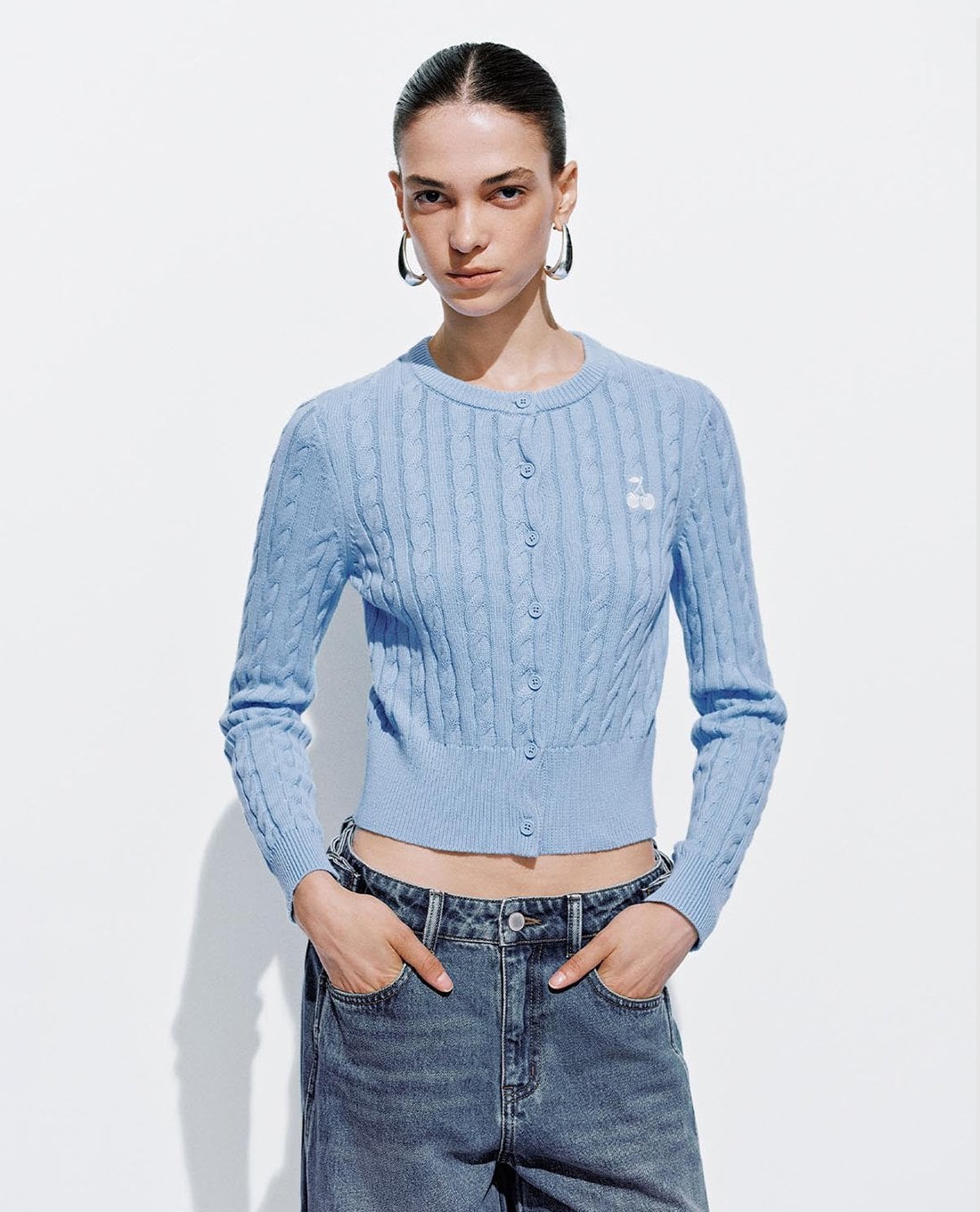 Áo khoác cardigan nữ dệt thừng thêu cherry