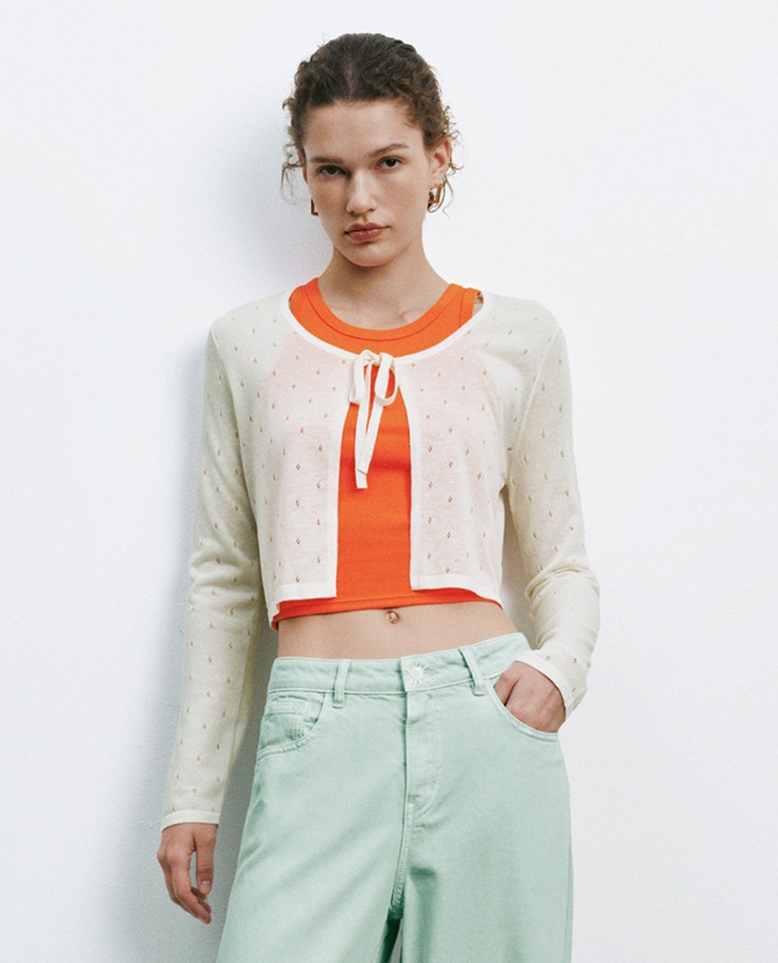 - Áo cardigan dáng croptop nữ tính, nhẹ nhàng