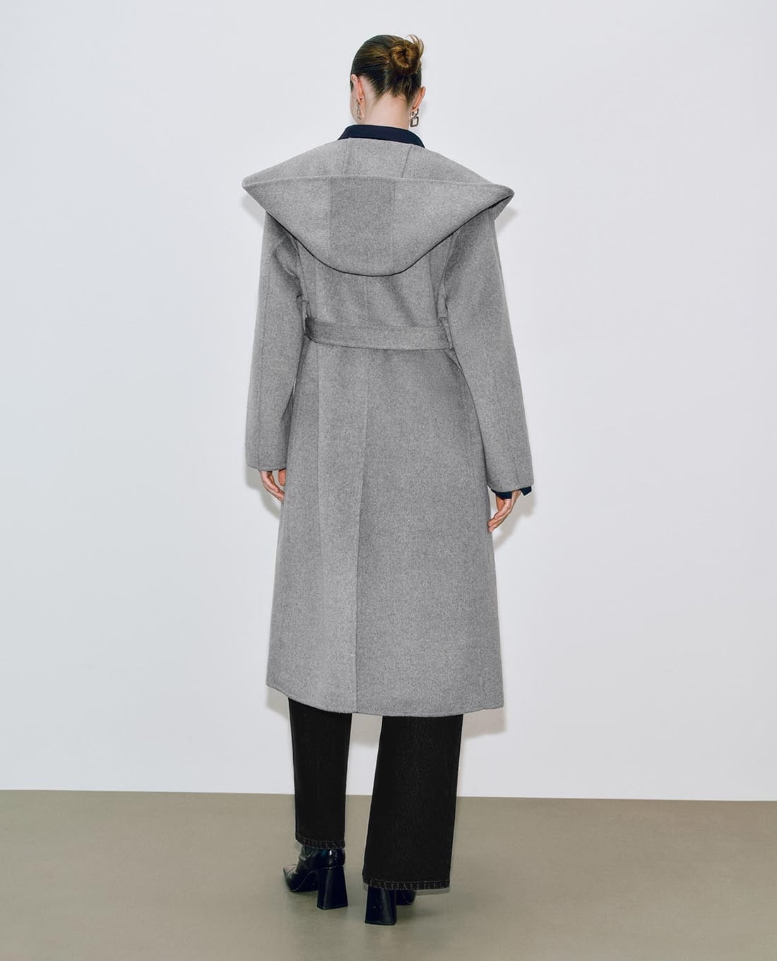 Áo khoác dạ lông cừu nữ dáng dài phối đai thắt eo