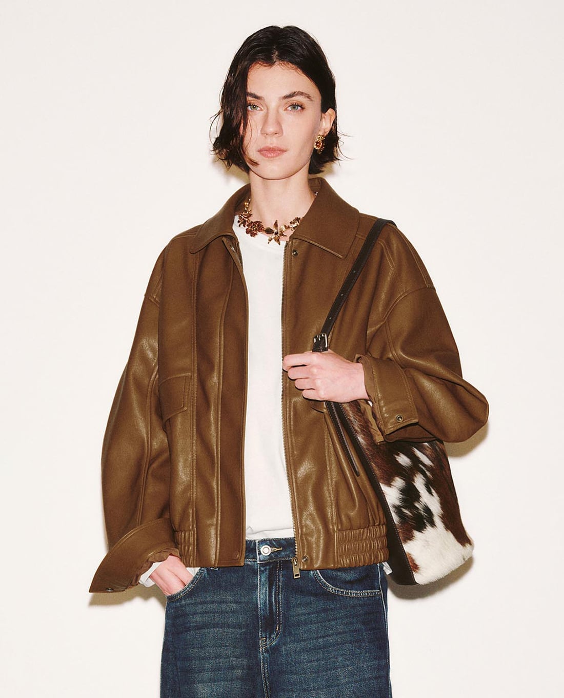- Thiết kế áo khoác da dáng bomber cá tính, hiện đại