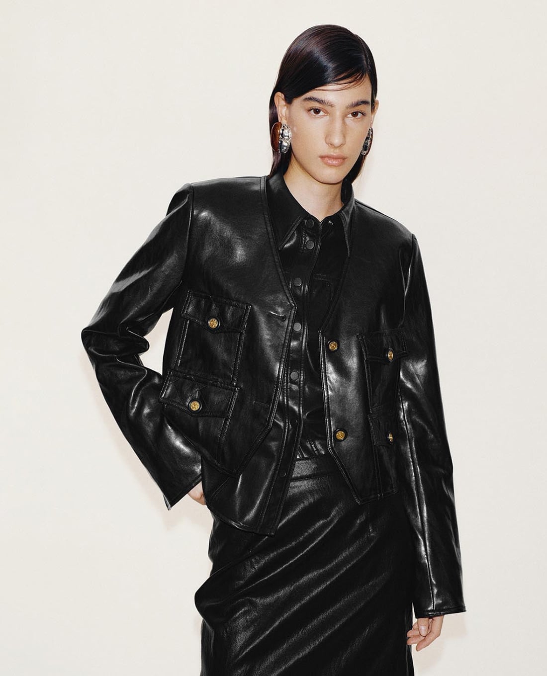- Thiết kế áo khoác da dáng ngắn hiện đại tôn tỷ lệ cơ thể