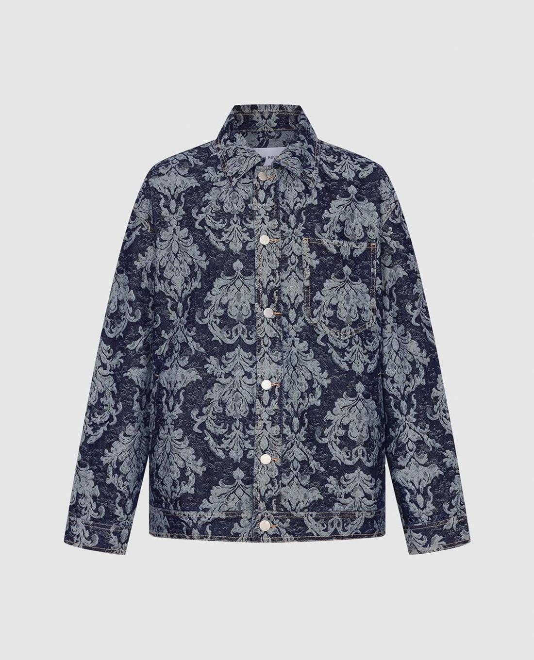 - Thiết kế áo khoác denim cổ điển với họa tiết baroque độc đáo