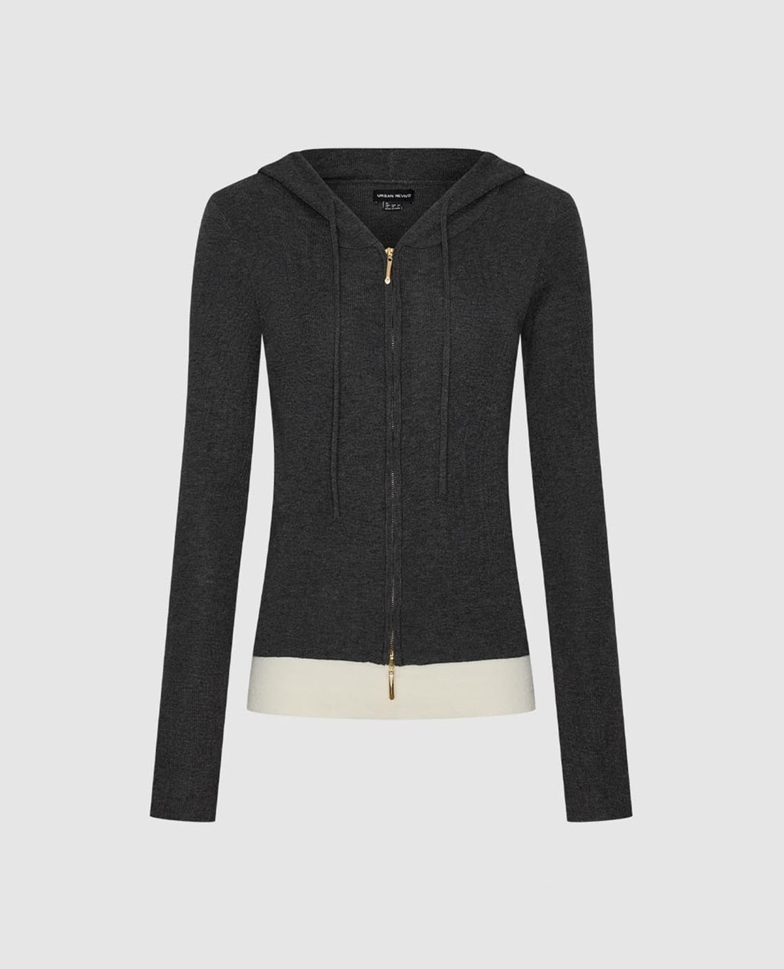 Áo khoác dệt kim nữ phối mũ phom ôm