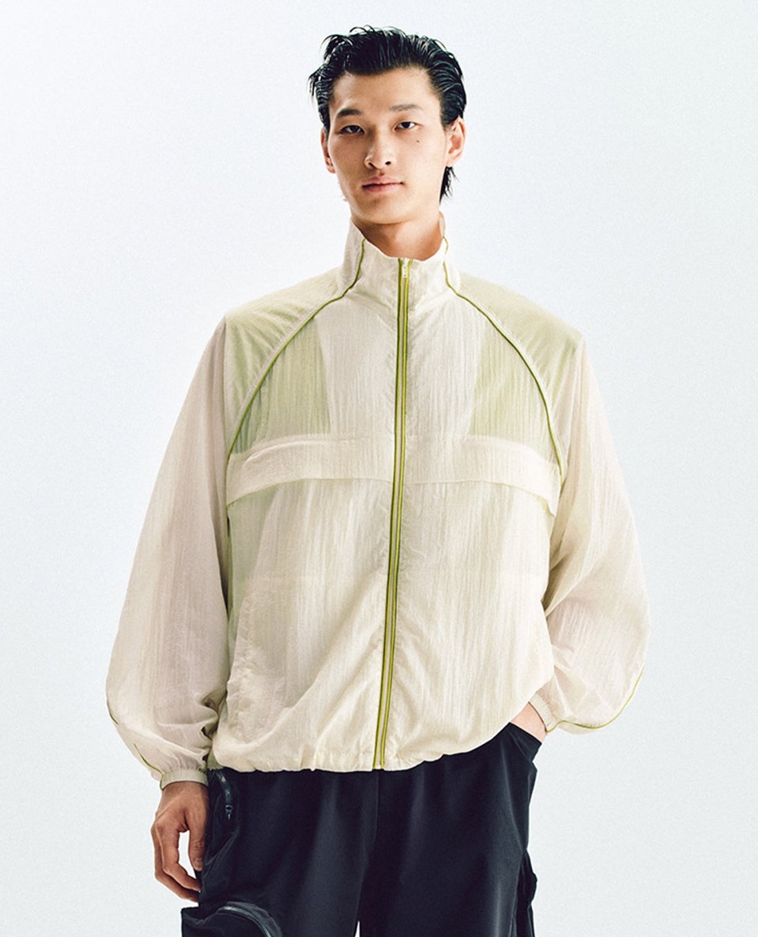 Áo khoác gió nam cổ trụ phối viền