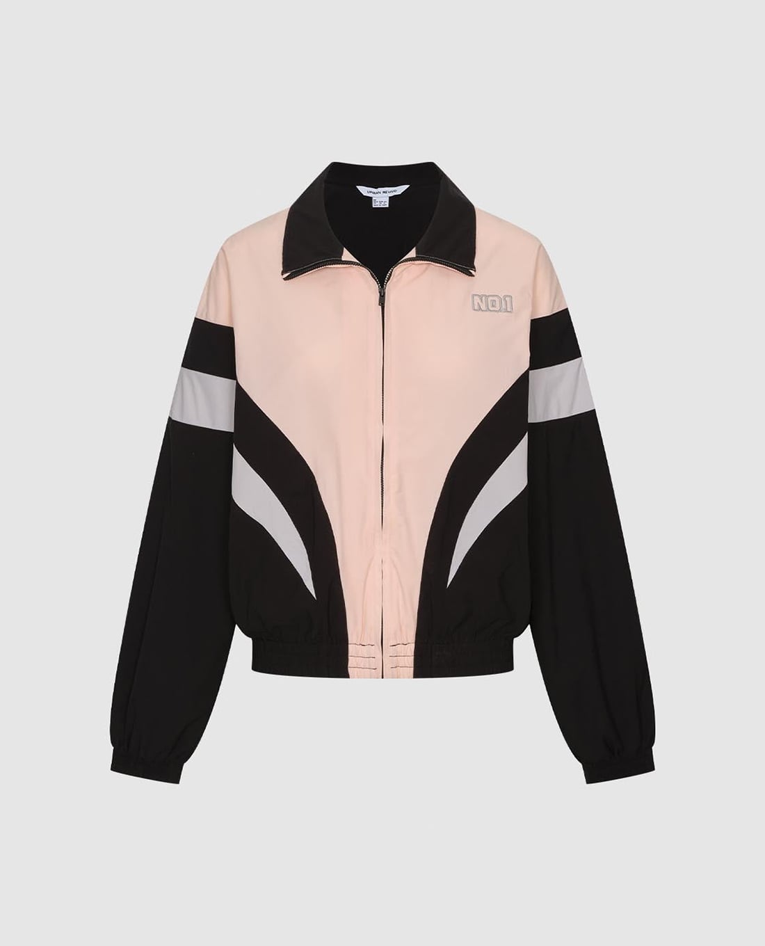 Áo khoác gió nữ cổ bẻ phối khóa zip