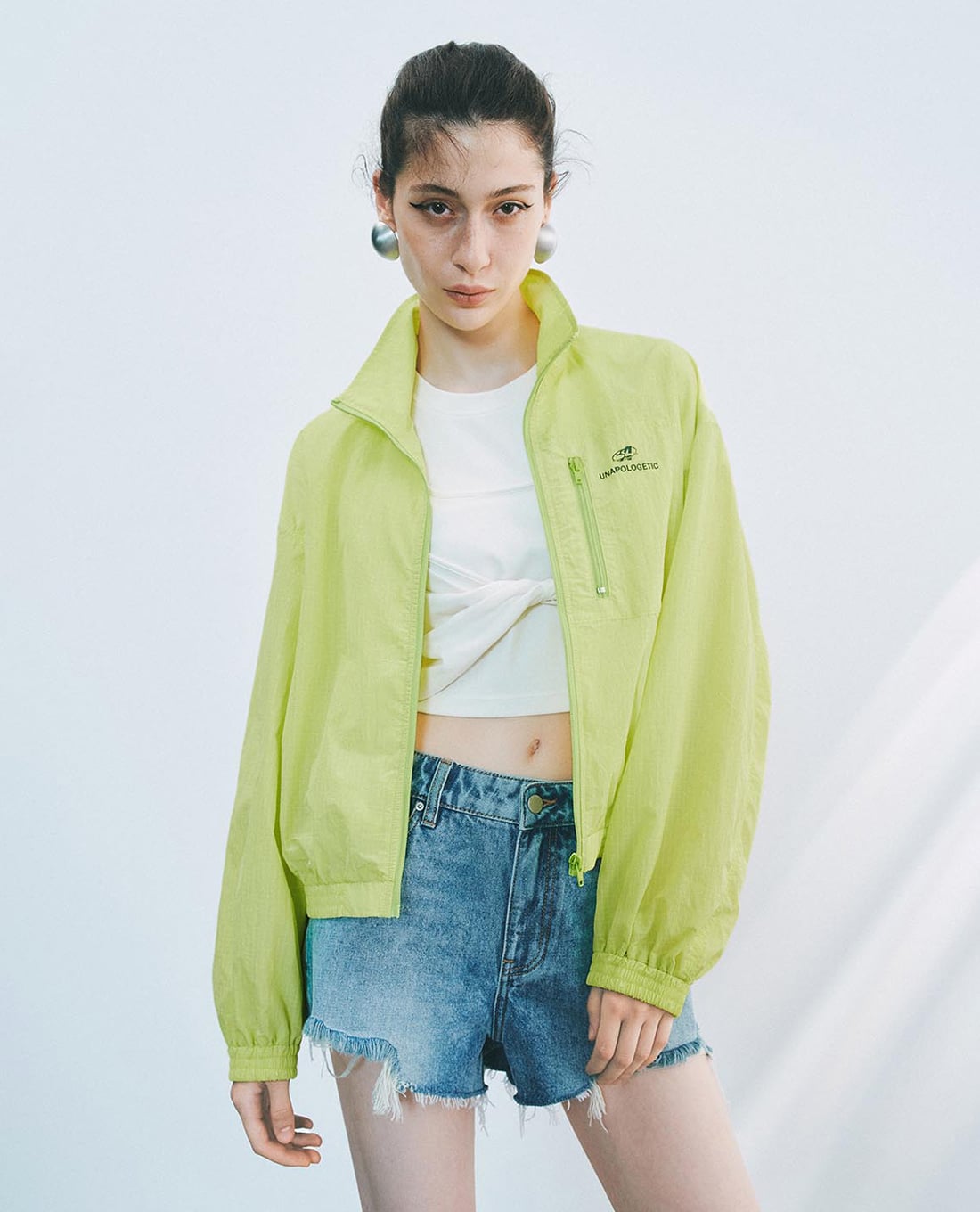 Áo khoác gió nữ cổ bẻ tay dài phối khóa zip