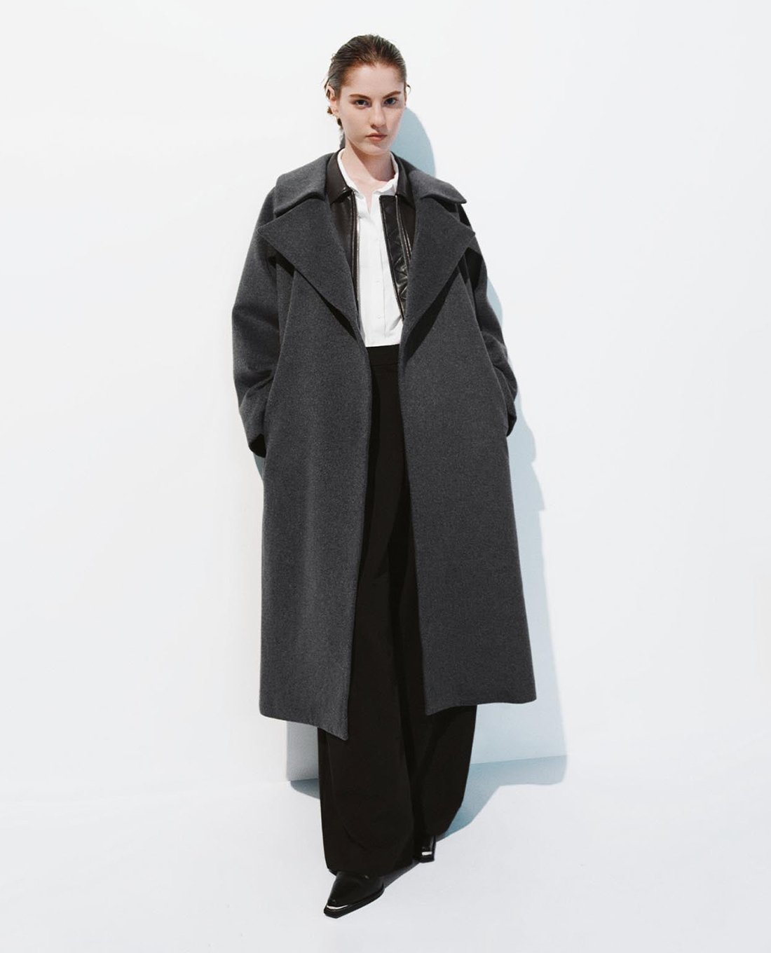 - Thiết kế áo khoác dáng dài với cổ vest bản lớn sang trọng