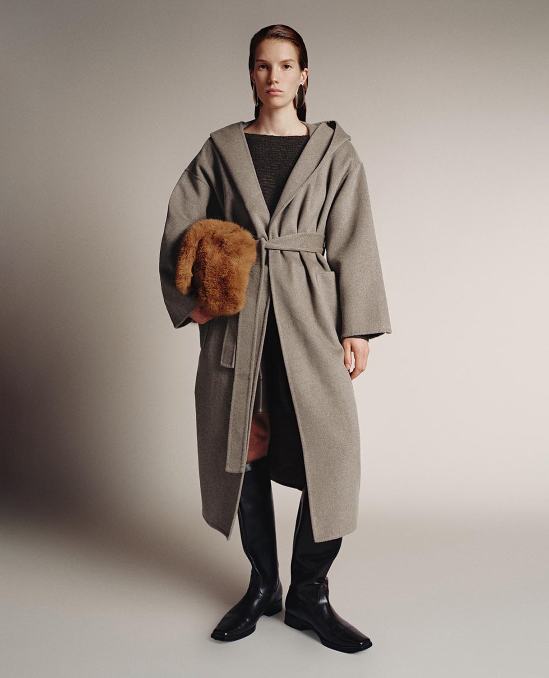 - Áo khoác dáng dài kết hợp mũ trùm tạo vẻ hiện đại và giữ ấm tốt