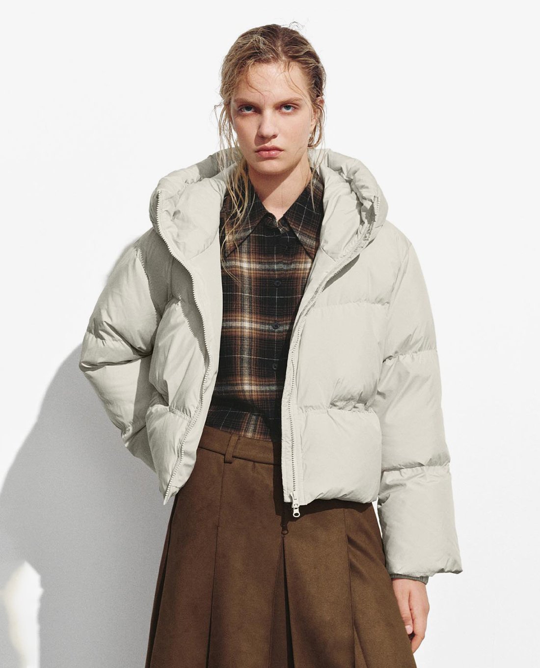 Áo khoác phao nữ cổ cao dáng ngắn