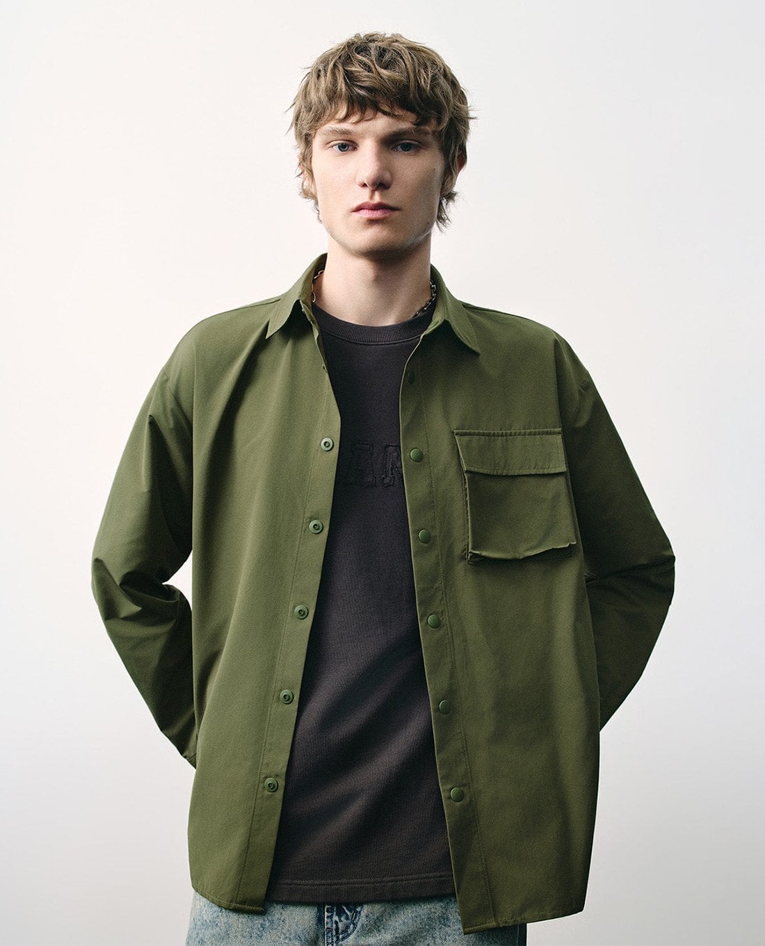 Áo khoác sơ mi nam cổ bẻ tay dài Button Up Loose