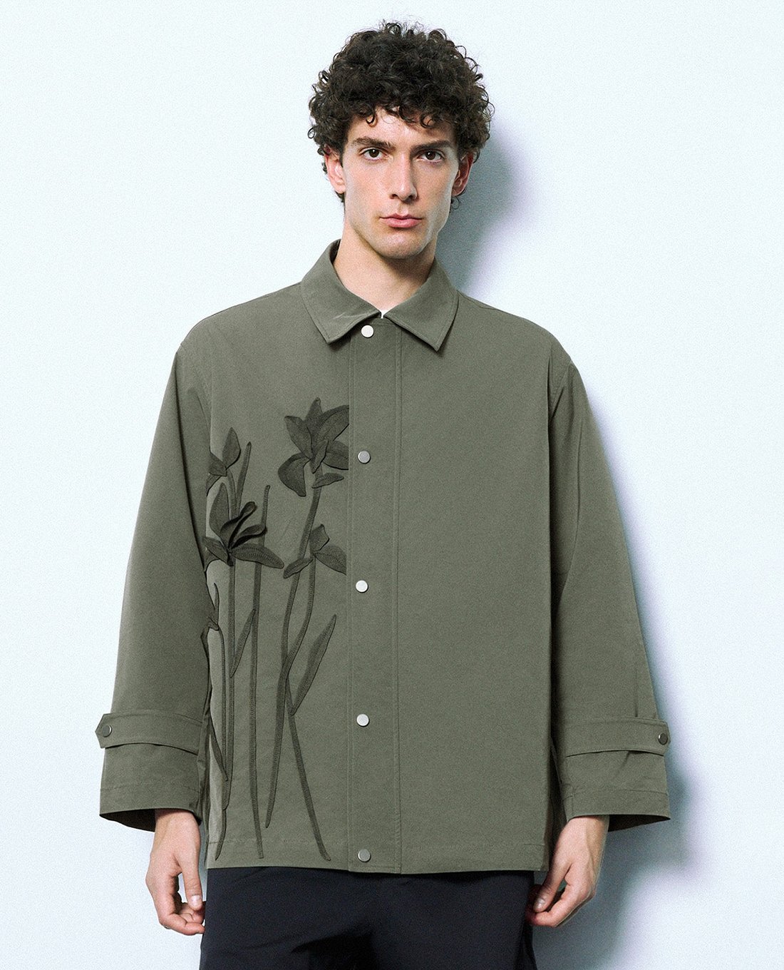 Áo khoác sơ mi nam cổ bẻ tay dài thêu hoa Embossed