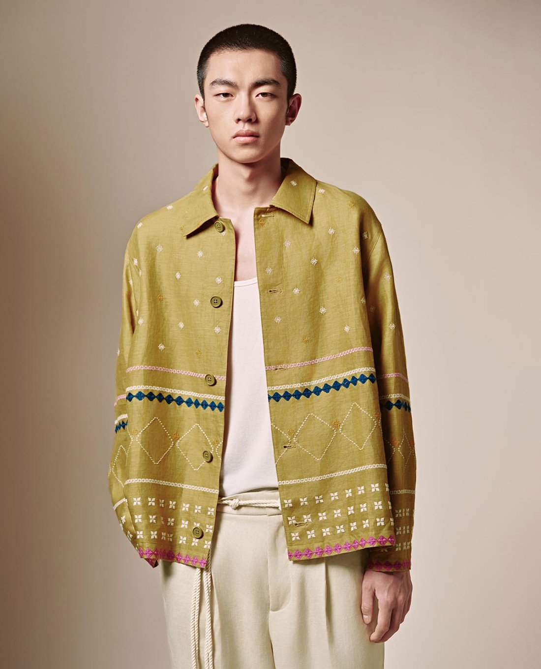 - Thiết kế dáng sơ mi cổ bẻ với chi tiết hình thổ cẩm tinh xảo