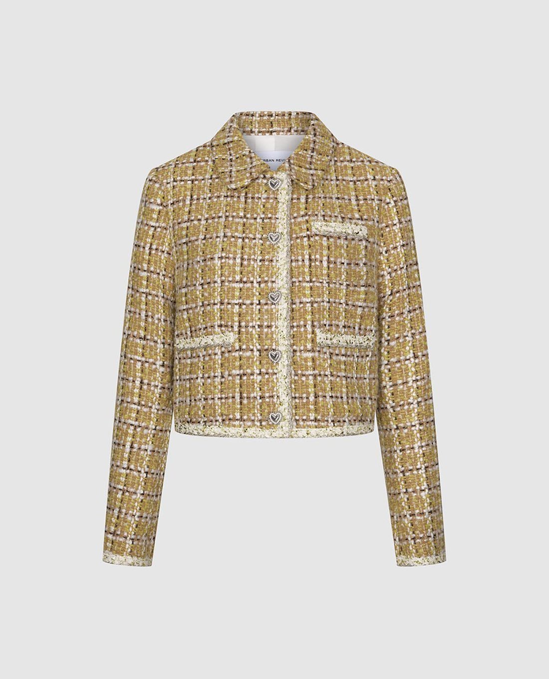 Áo khoác tweed nữ cổ tròn tay dài phom croptop
