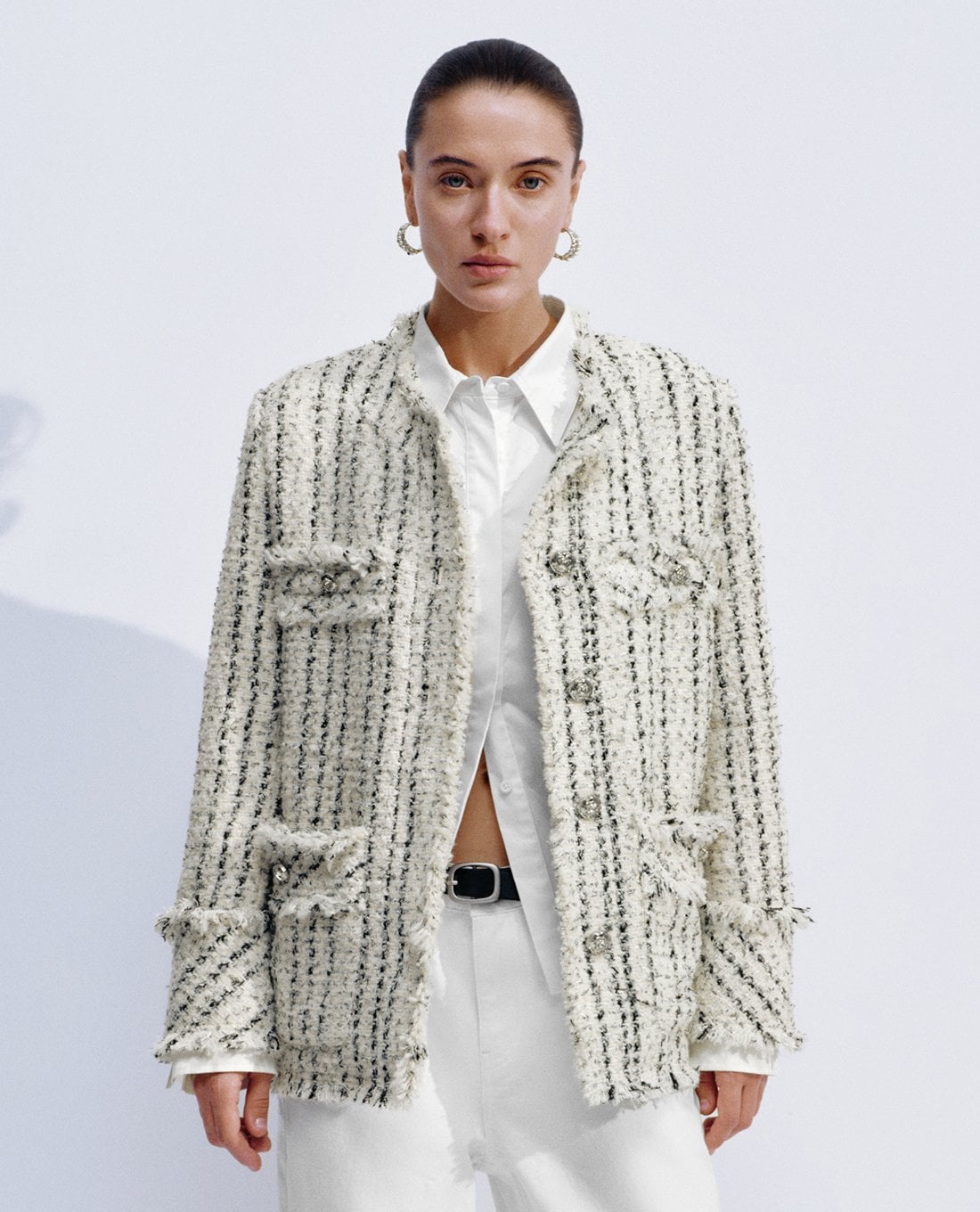 Áo khoác tweed nữ kẻ sọc ánh kim