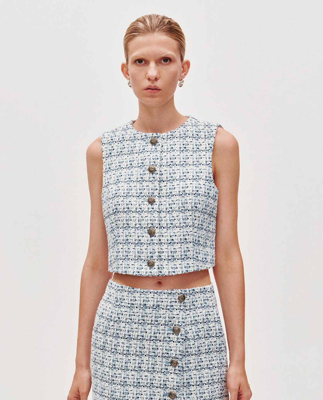 - Chất liệu tweed sang trọng mang lại cảm giác thanh lịch