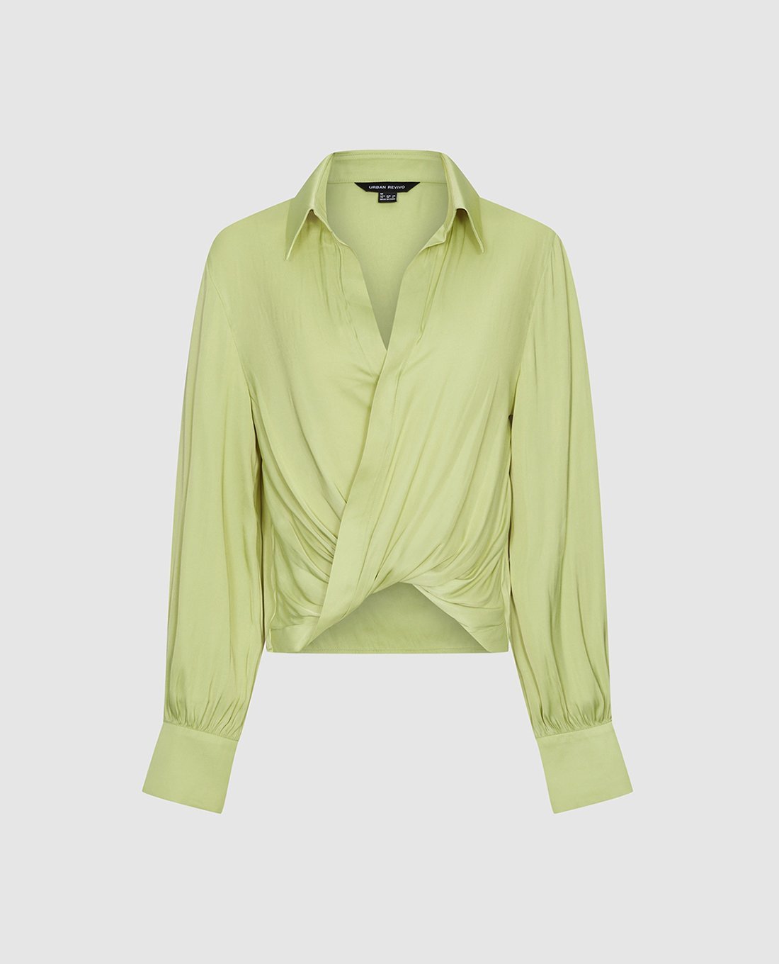 Áo kiểu nữ cổ bẻ tay dài xoắn eo