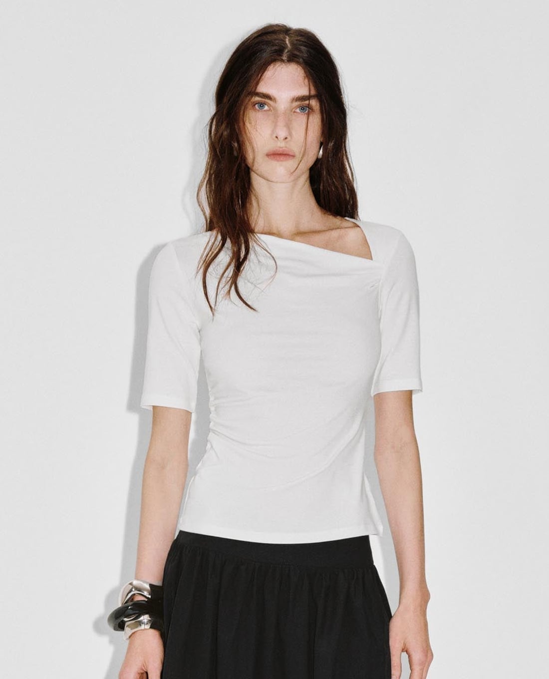 - Thiết kế cổ lệch độc đáo tạo điểm nhấn nổi bật