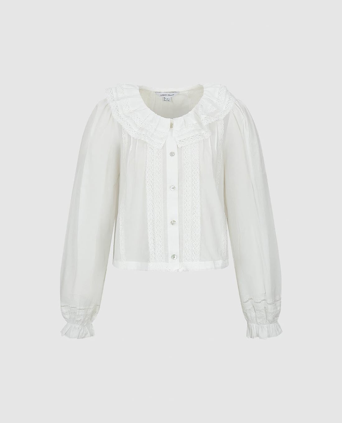 Áo kiểu nữ cổ tròn tay dài phối bèo