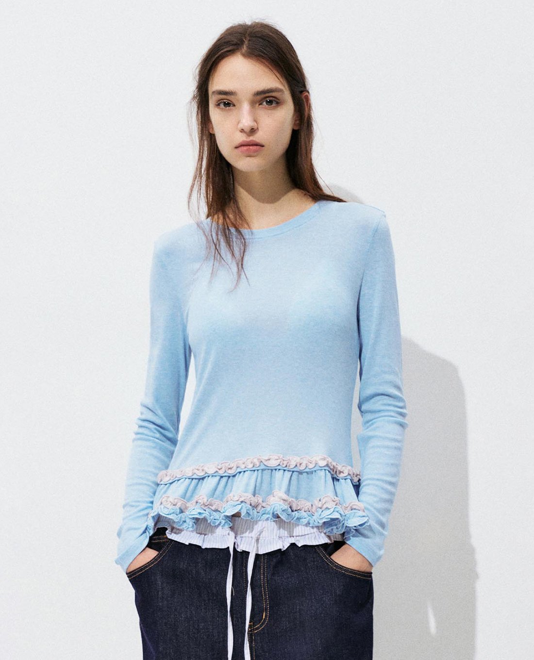Áo kiểu nữ cổ tròn tay dài phối bèo