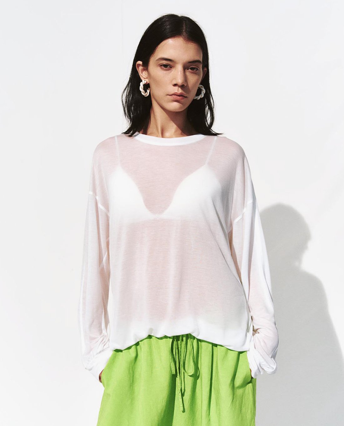 Áo kiểu nữ cổ tròn tay dài xuyên thấu