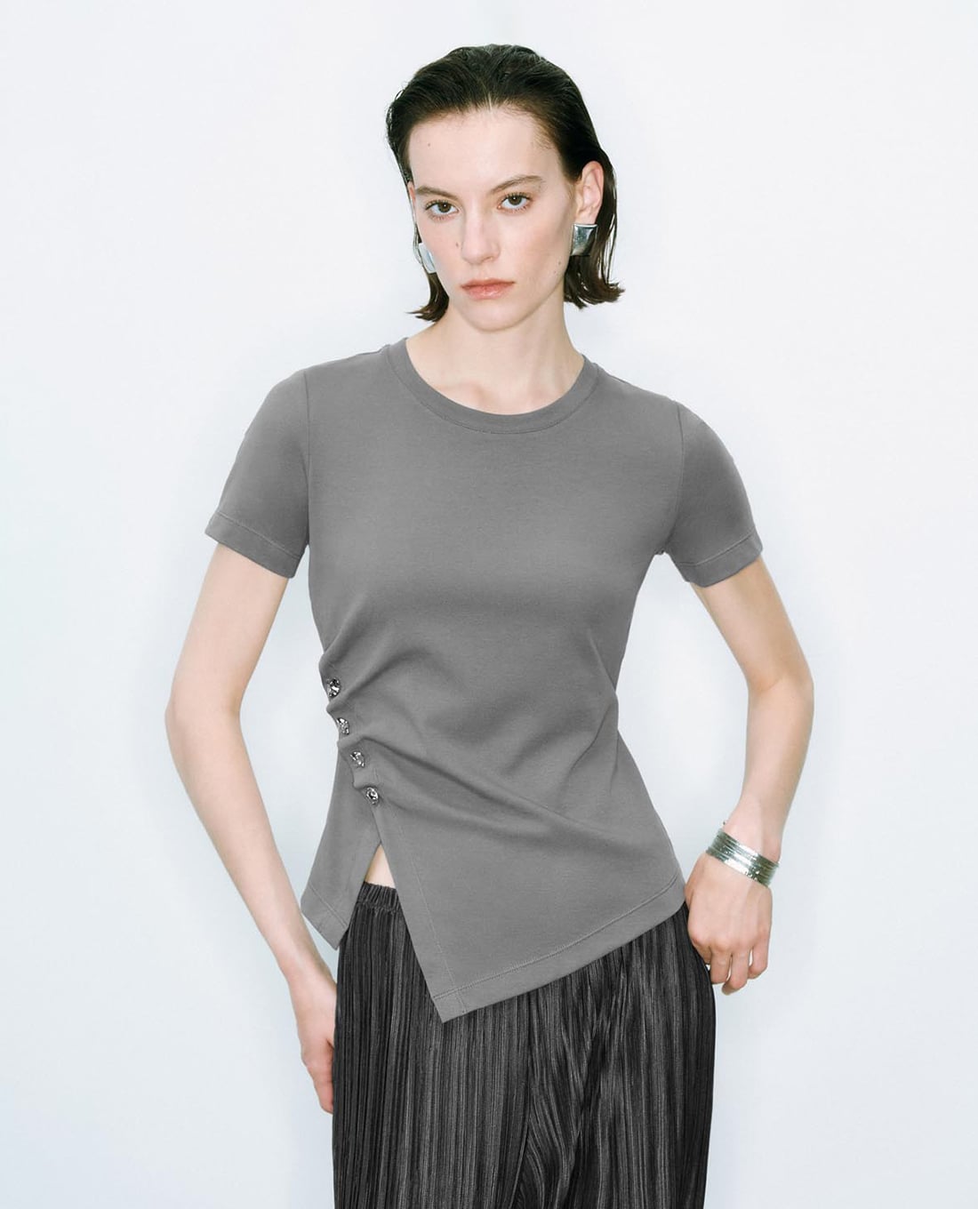 Áo kiểu nữ cổ tròn tay ngắn lệch tà