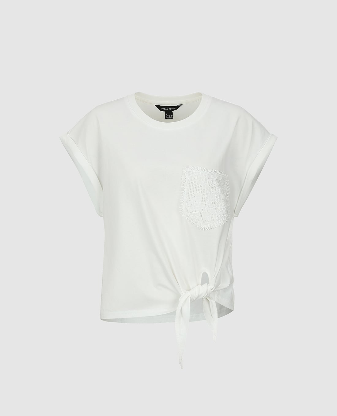 Áo kiểu nữ cổ tròn tay ngắn phối túi ren