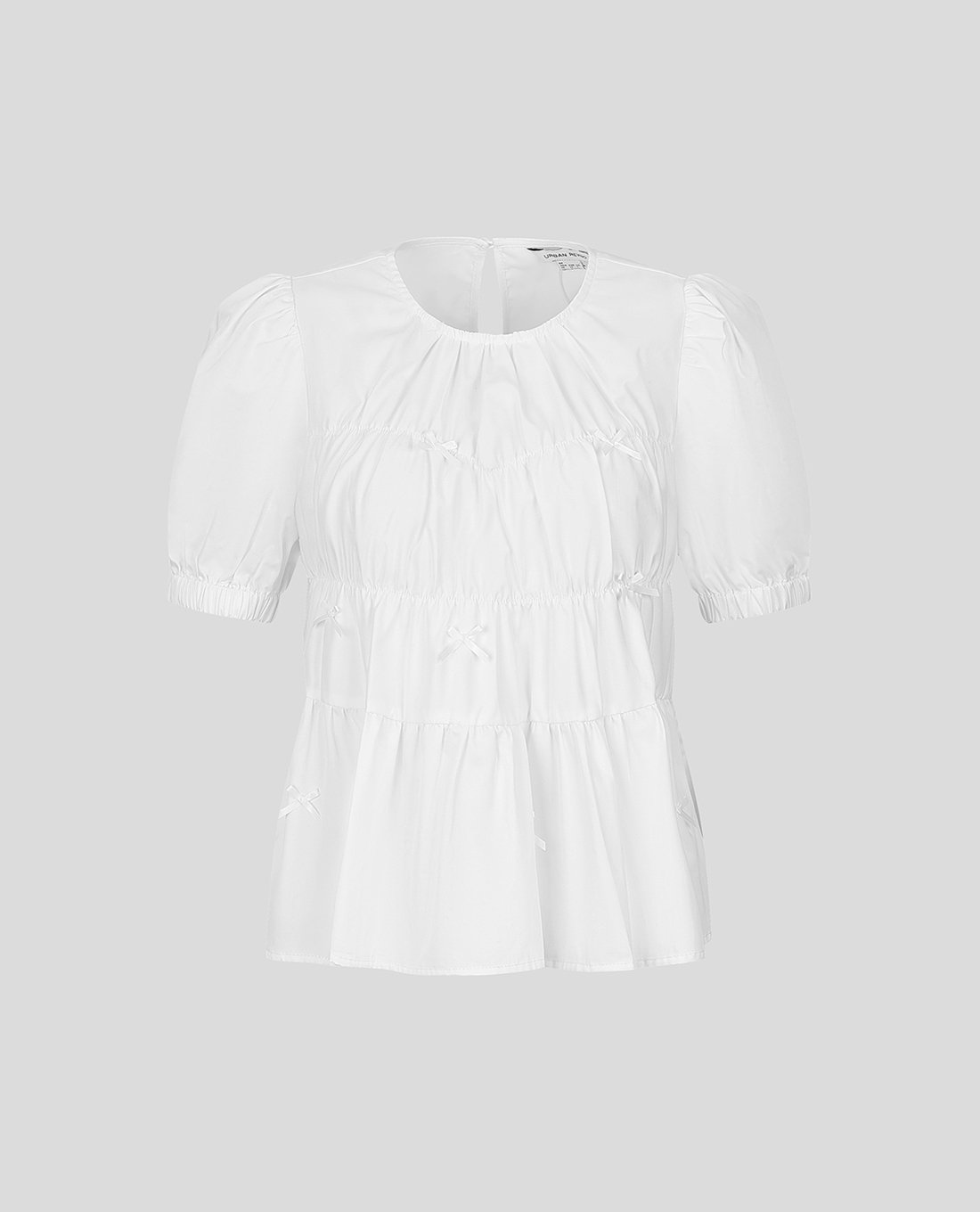 Áo kiểu nữ cổ tròn tay phồng nơ nhí
