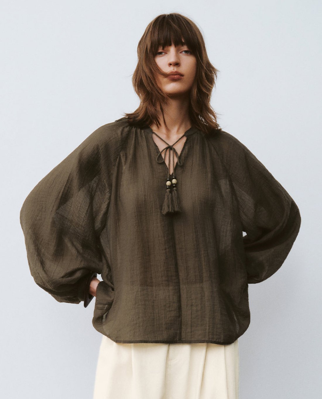 - Kiểu dáng áo blouse phom rộng tay dài đầy phong cách