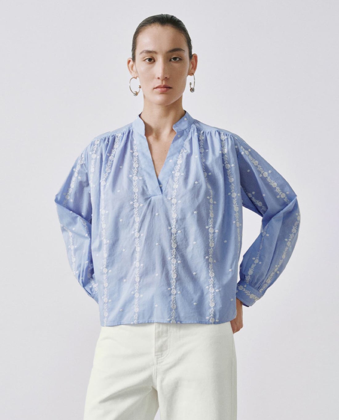 Áo kiểu nữ cổ V tay dài thêu hoa