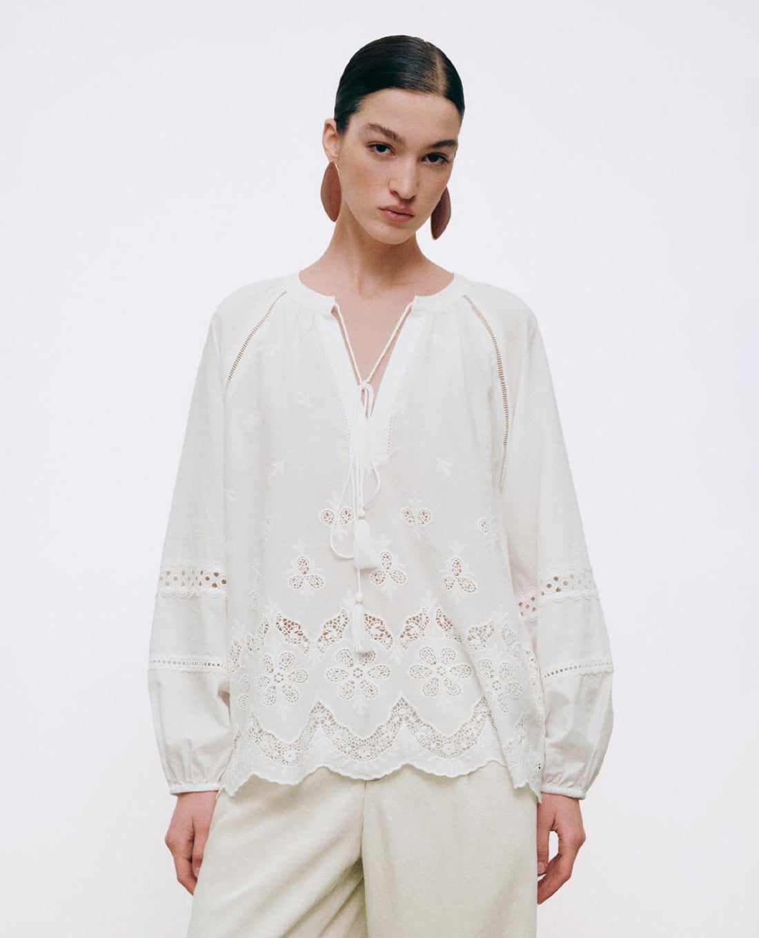 - Tay dài bo nhẹ kèm đường ren cắt laser tăng vẻ mềm mại