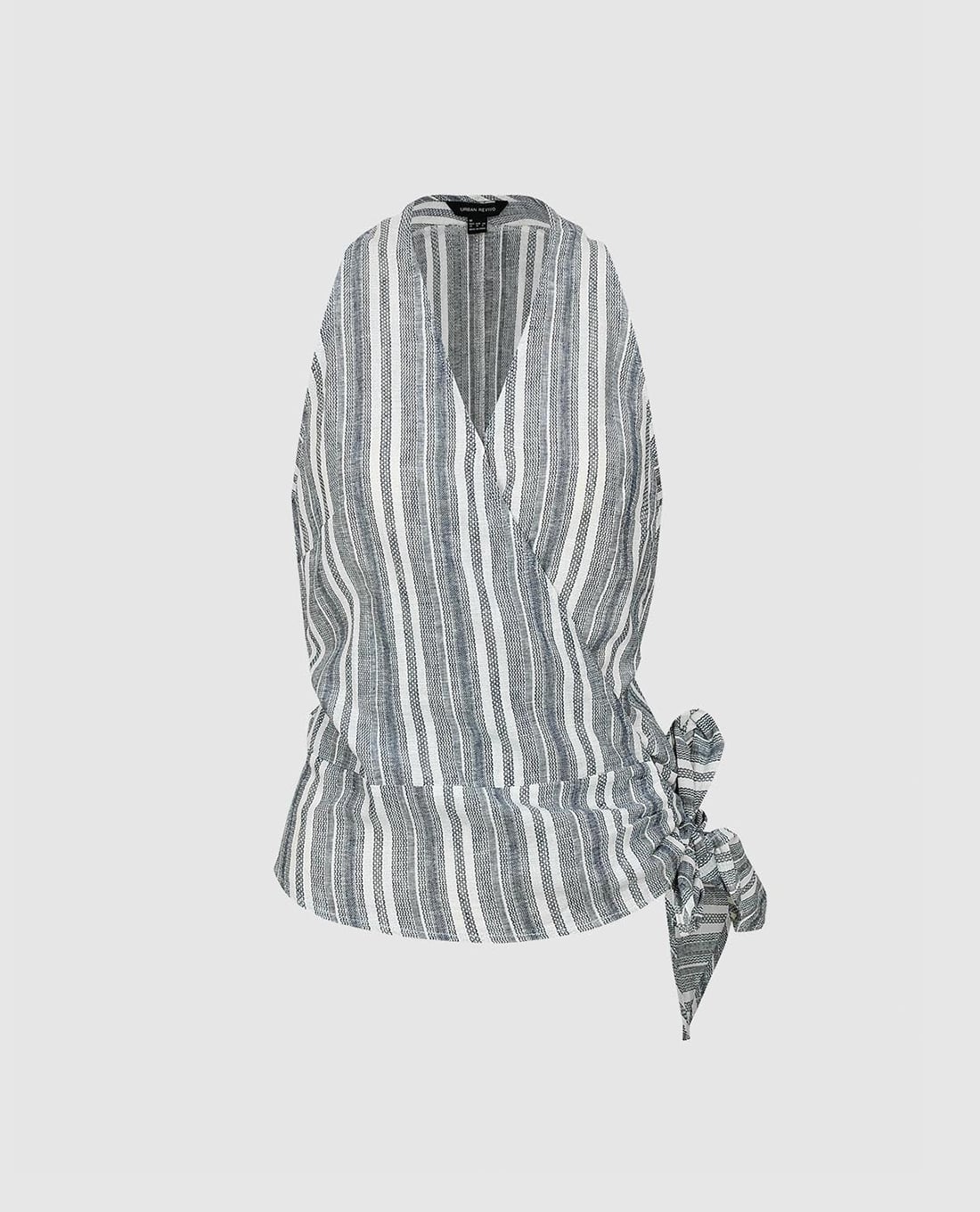 Áo kiểu nữ cổ yếm buộc nơ kẻ sọc