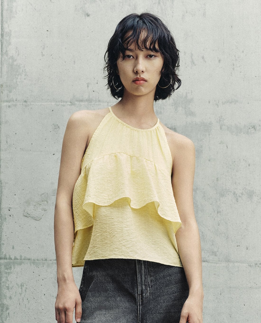 Áo kiểu nữ cổ yếm phối bèo xếp tầng