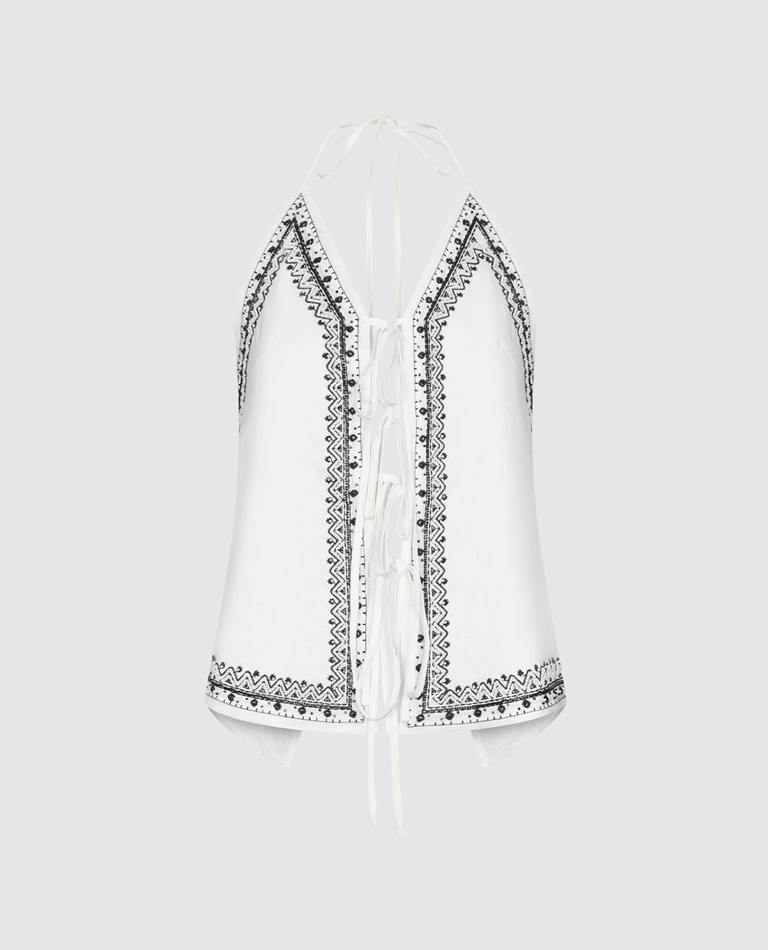 Áo kiểu nữ cổ yếm thêu họa tiết