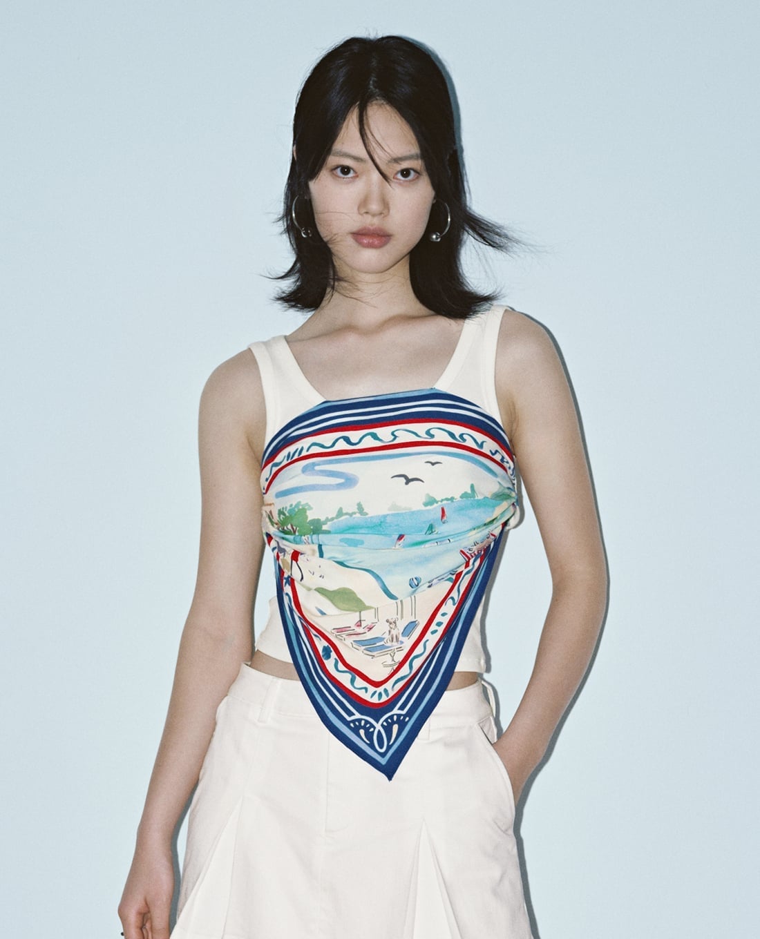 Áo kiểu nữ hai dây phối khăn họa tiết