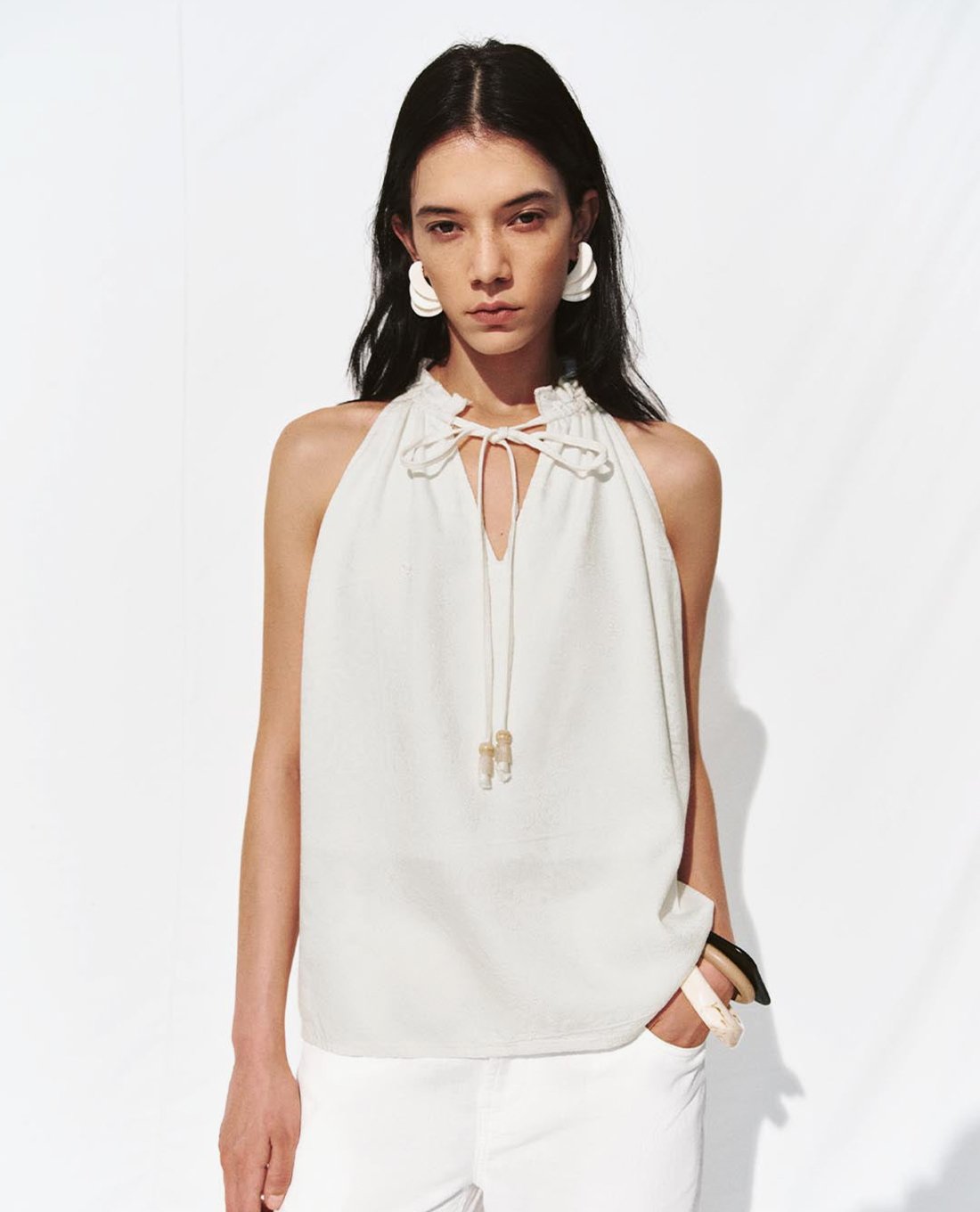 Áo kiểu nữ sát nách cổ V thắt nơ