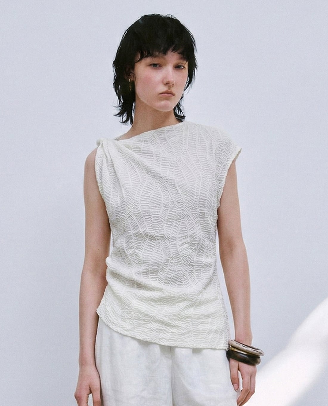 Áo kiểu nữ sát nách họa tiết dập nổi
