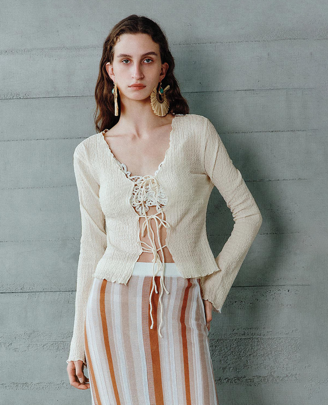 - Thiết kế dài tay với chi tiết buộc dây ren độc đáo