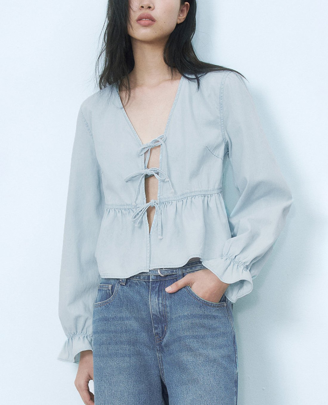 - Kiểu áo blouse cổ V phom rộng trang nhã