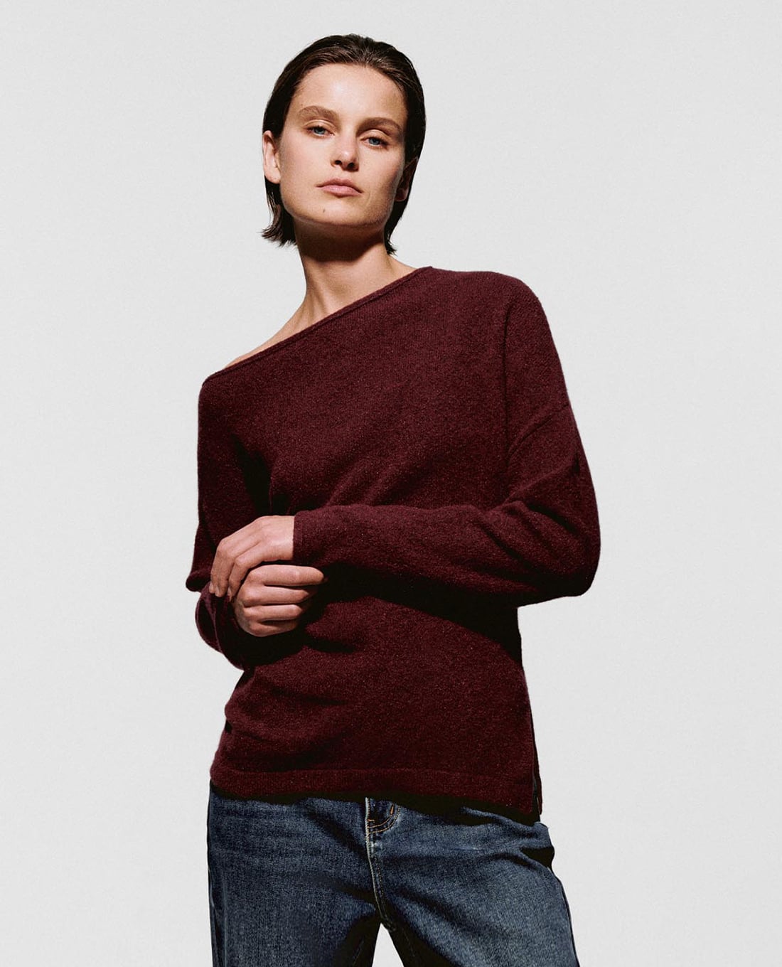 Áo kiểu nữ tay dài lệch vai nhún eo