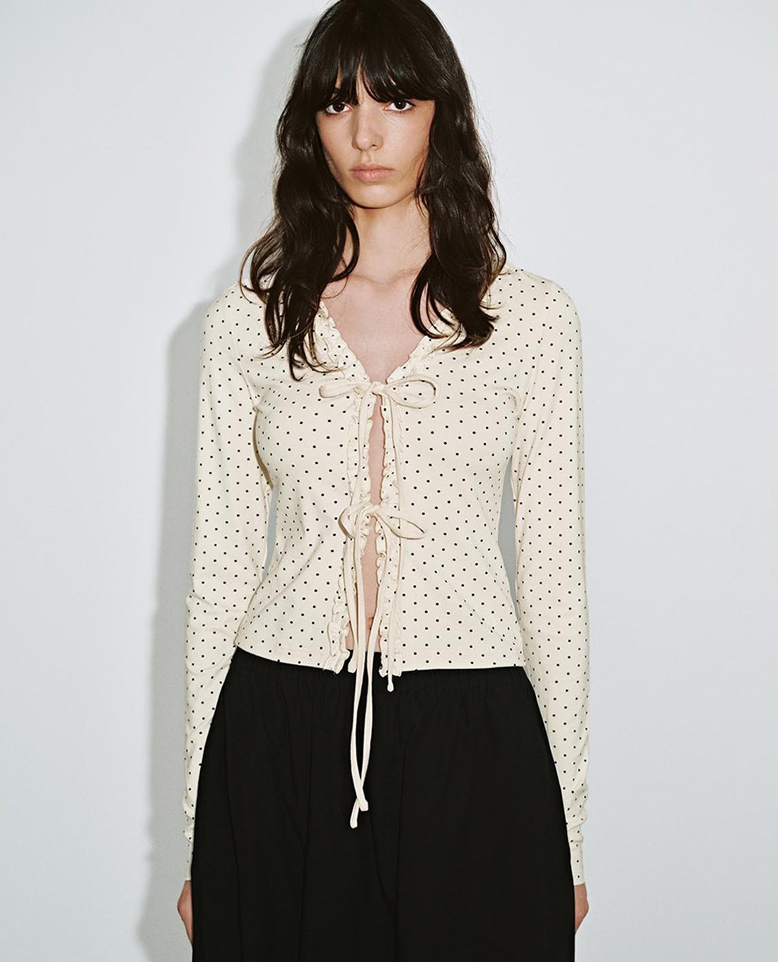 - Kiểu dáng cổ V với dây buộc nhỏ xinh xắn