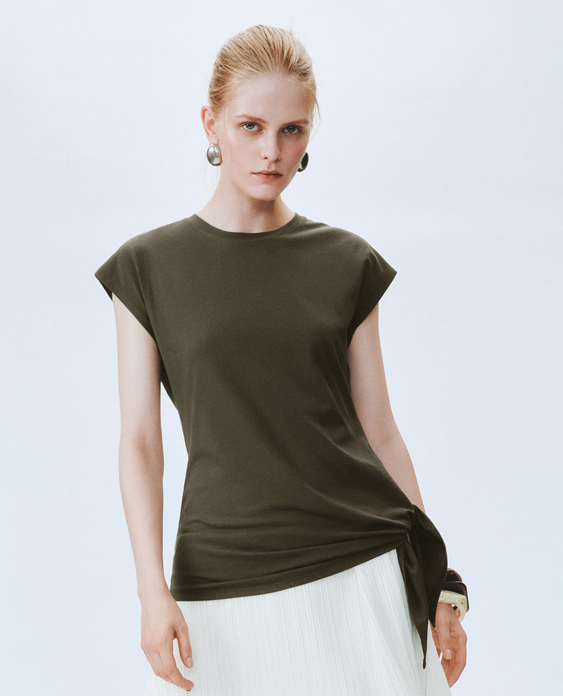 Áo kiểu nữ tay ngắn buộc vạt chéo