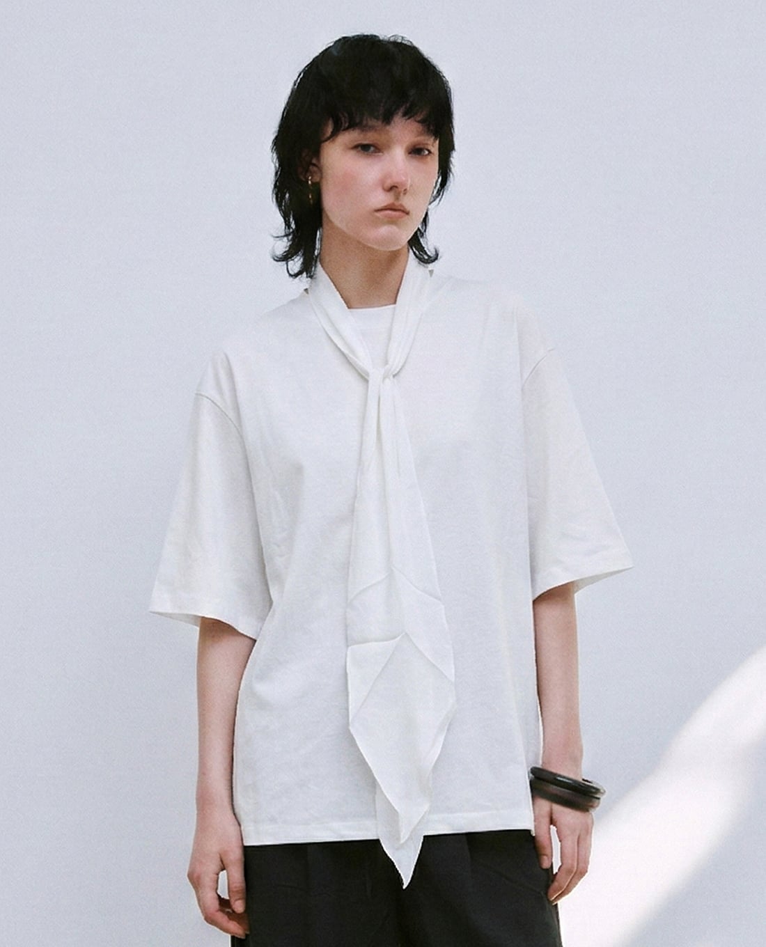 Áo kiểu nữ tay ngắn phối khăn buộc cổ