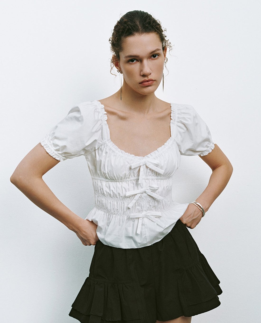 Áo kiểu nữ tay phồng phối nơ Bow Decor