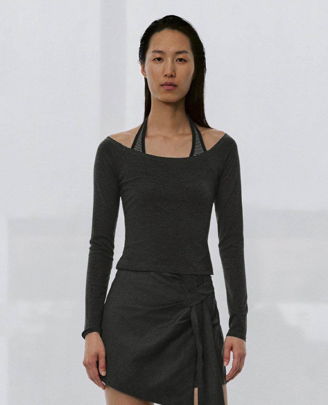 Áo kiểu nữ trễ vai tay dài phối dây