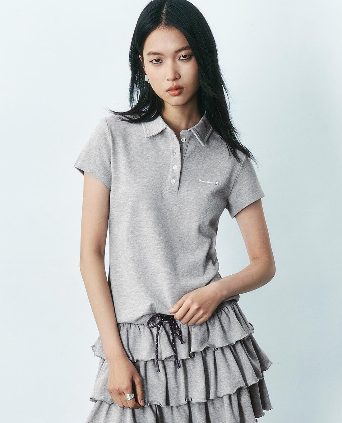 Áo polo nữ cổ bẻ tay ngắn thêu chữ