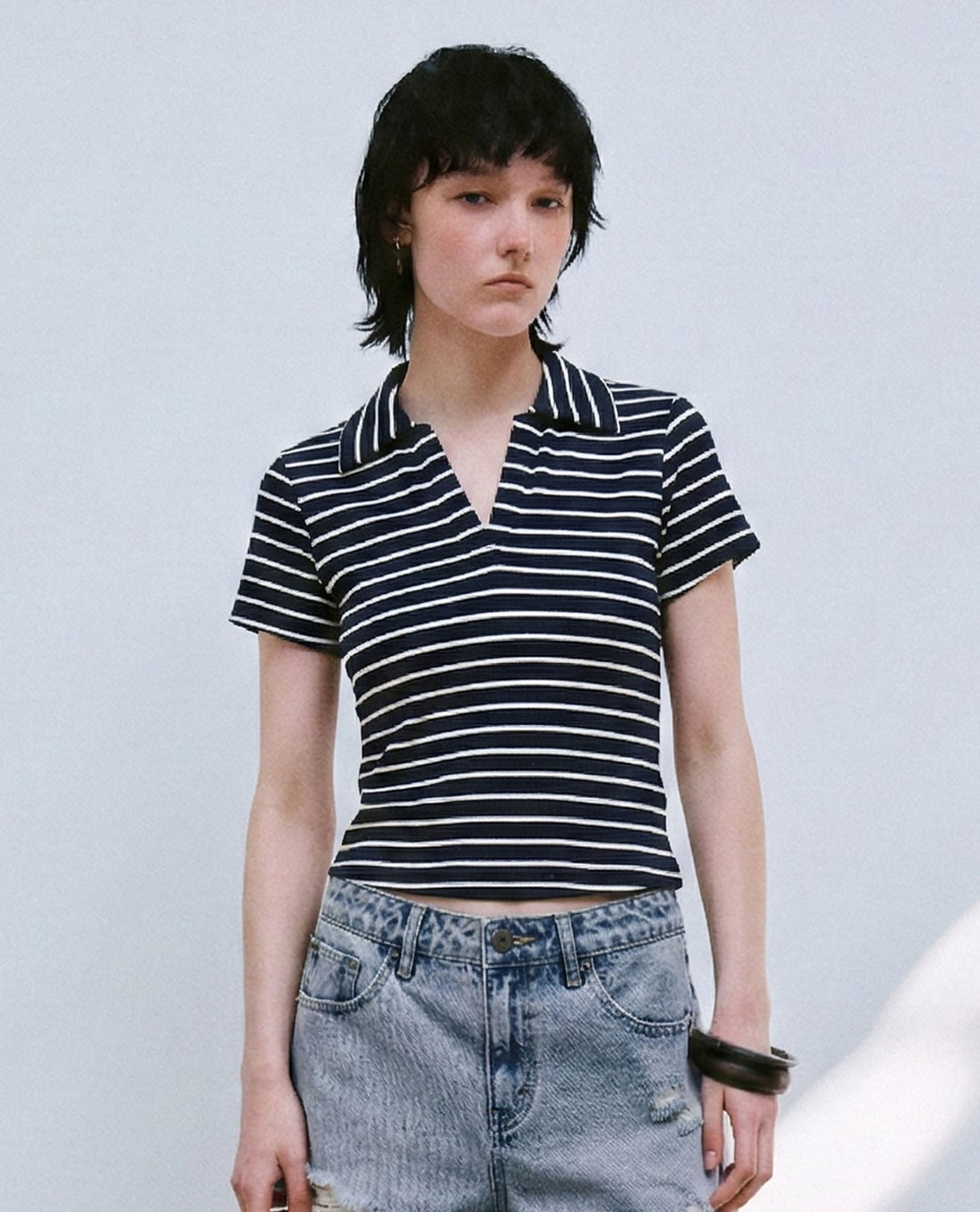 Áo polo nữ tay ngắn kẻ sọc phom ôm