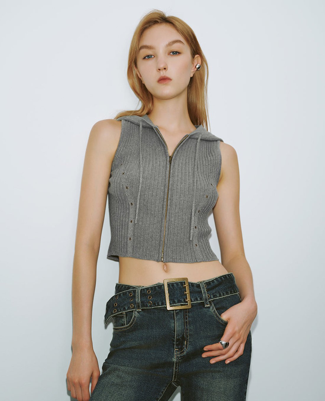 Áo sát nách dệt kim nữ phối mũ phom croptop